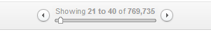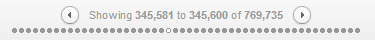 Where there are a large number of results, a maximum of 50 dots is shown, with each representing 2% of the list as a whole, and the first and last dots always going to the first and final pages. Users can click on any dot on the line to jump to that place in the list, and then use the left and right arrows to move forwards or backwards page by page from that point. This makes it easy to gain a good overview of the list as a whole, and to spot check results at any position in a large list.