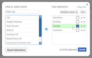 You may have long-term preferences for what you want to see in the search results, and these will be remembered even when you log out. But because it’s so easy to reset to the default configuration, it can also be helpful to make changes just for the duration of a specific task. Say, for example, you’re focusing on your current subscribers in the UK. The ‘US state’ field usually included by default will always be empty and the country field will always have the same value – so you may want to replace them with fields from the subscriptions data.